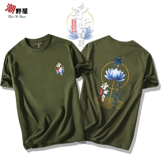 潮野屋净世白蓮 佛 南無阿彌陀佛 純棉T恤 短袖上衣 街頭穿搭 美式風 休閒短T 潮流服飾 WTD-1184