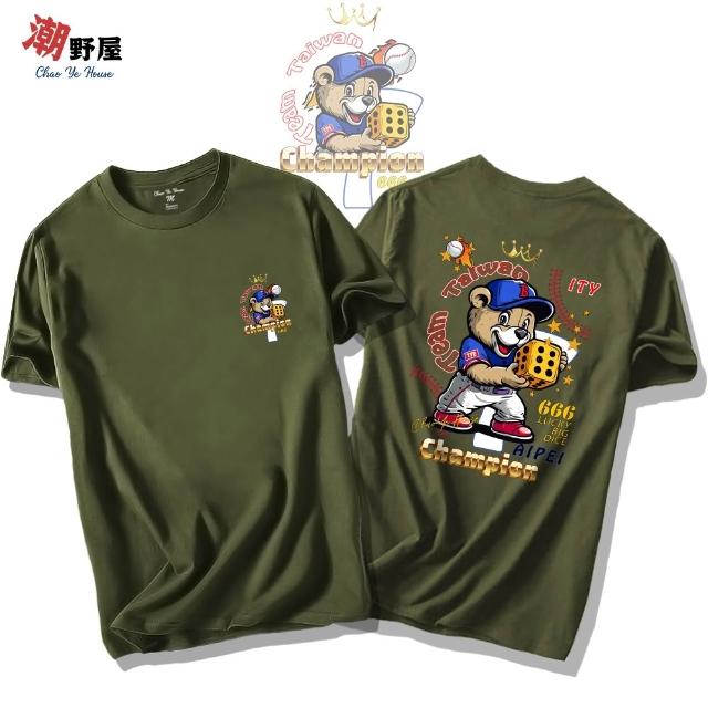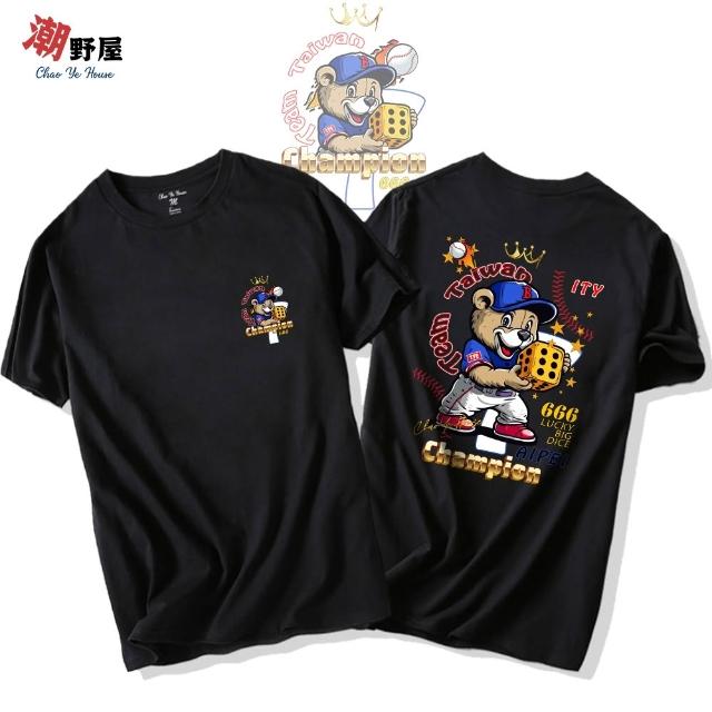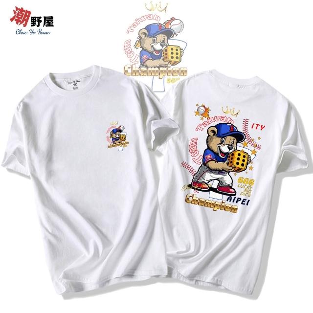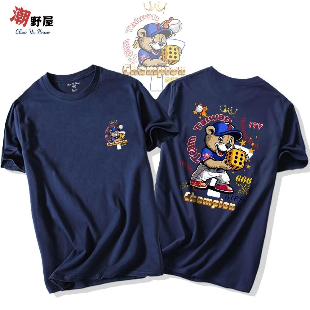 潮野屋幸運骰子666 棒球 冠軍 純棉T恤 短袖上衣 街頭穿搭 文字風 休閒短T 潮流服飾 WTD-1087