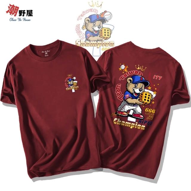 潮野屋幸運骰子666 棒球 冠軍 純棉T恤 短袖上衣 街頭穿搭 文字風 休閒短T 潮流服飾 WTD-1087