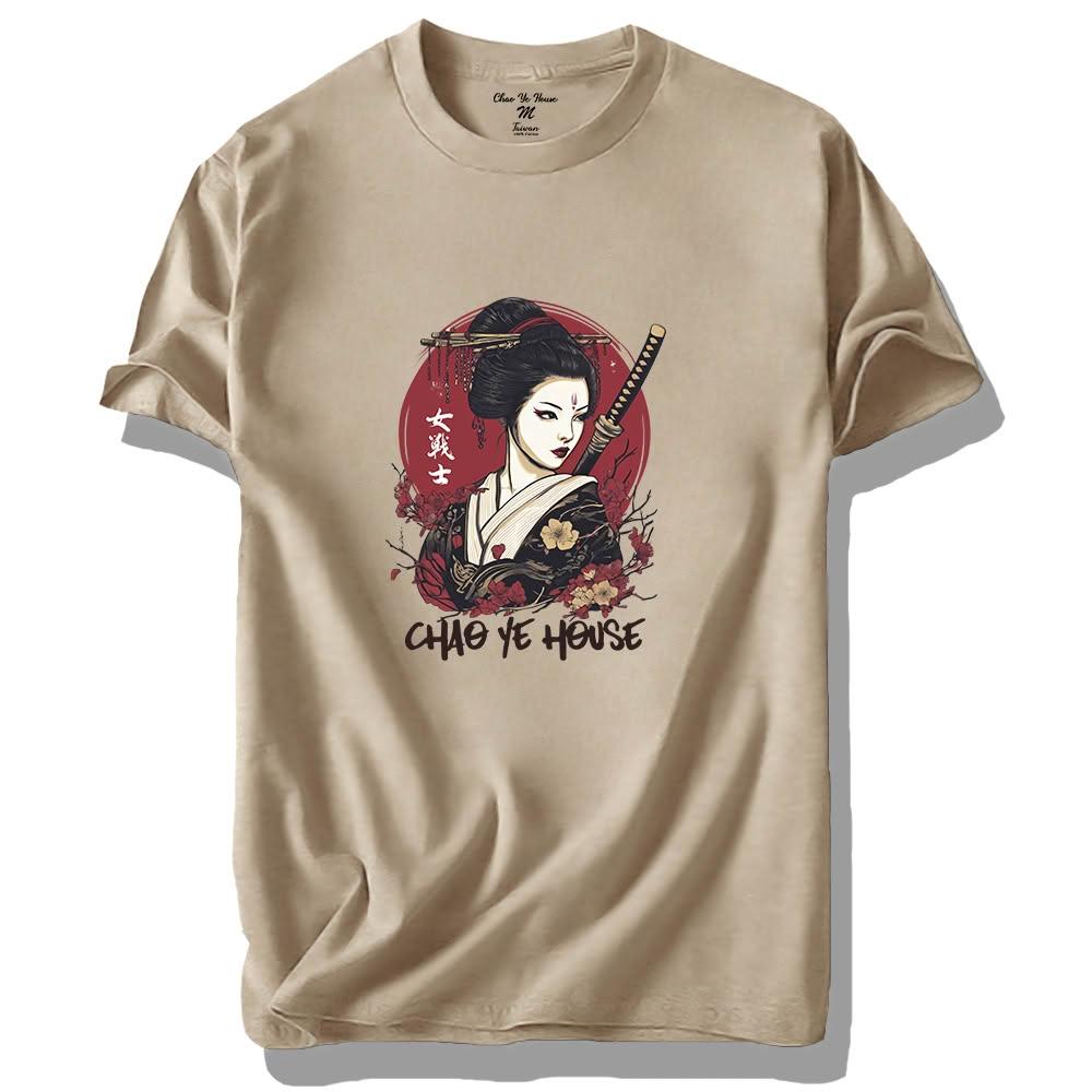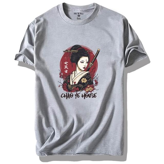 潮野屋日本女武士 純棉T恤 短袖上衣 日式風 休閒短T 街頭穿搭 潮流服飾 YAN WTS-3282