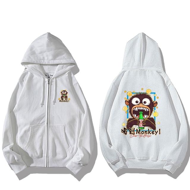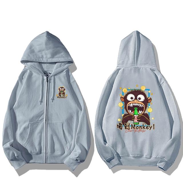 潮野屋喝到Monkey! 啤酒 猴子 連帽外套 刷毛 長袖上衣 文字風 街頭穿搭 WJD-1191