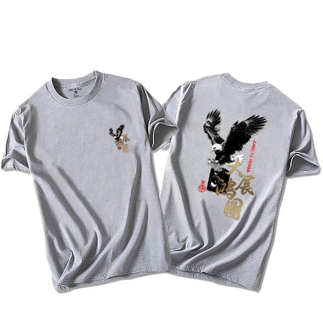 潮野屋大展鴻圖 老鷹 銀龍魚 唱K 純棉T恤 短袖上衣 文字風 休閒短T 街頭穿搭 WTD-1192
