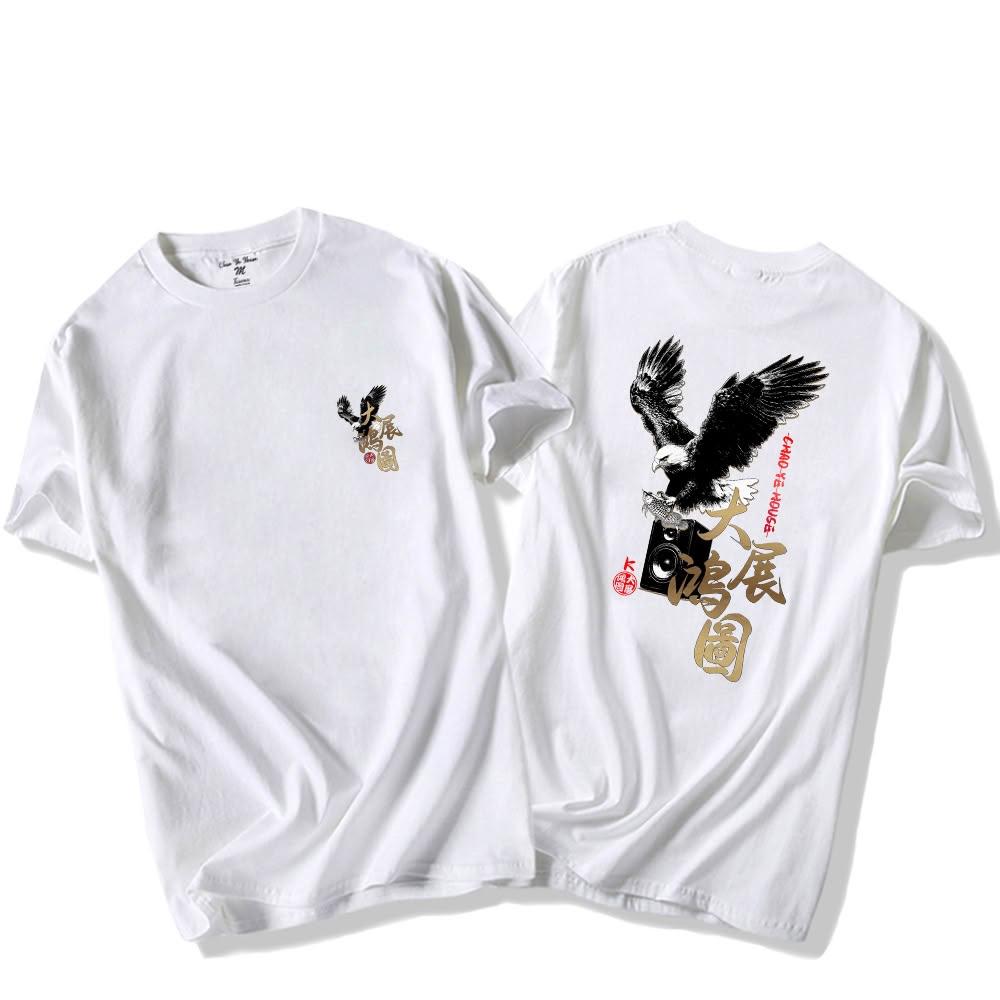 潮野屋大展鴻圖 老鷹 銀龍魚 唱K 純棉T恤 短袖上衣 文字風 休閒短T 街頭穿搭 WTD-1192