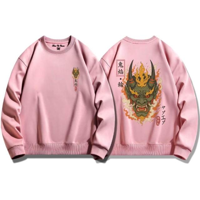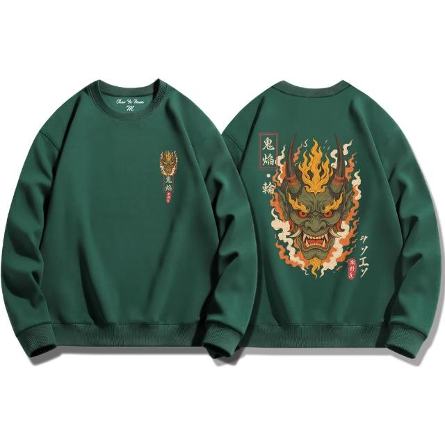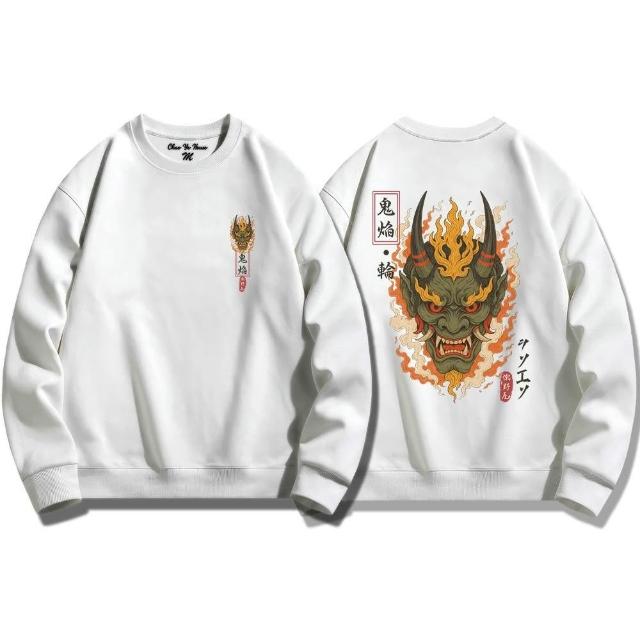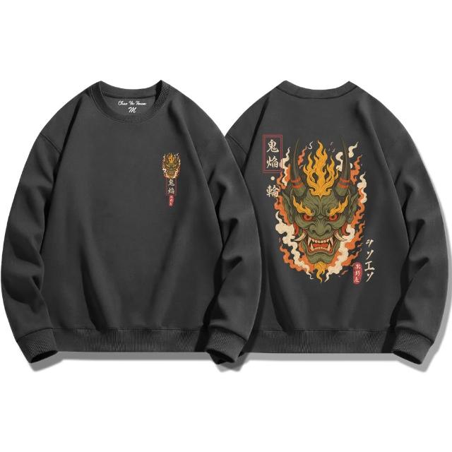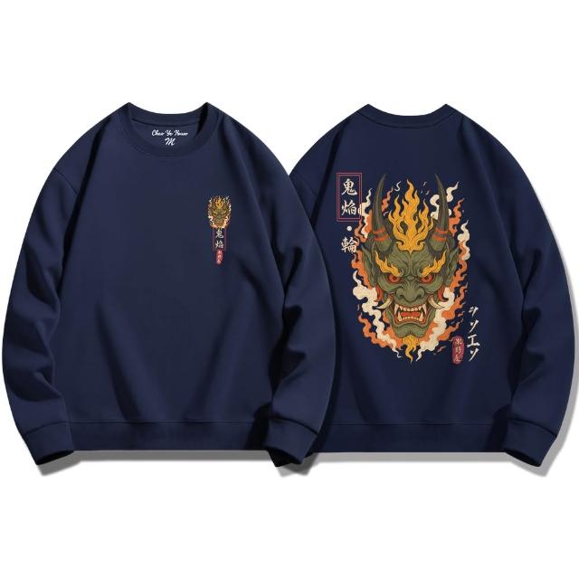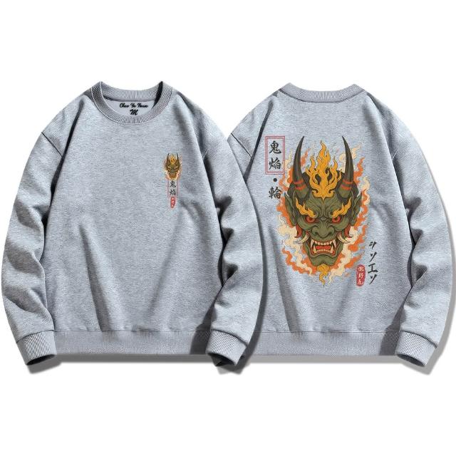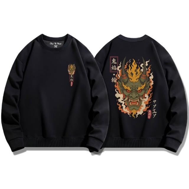 潮野屋鬼焰之輪 般若 日式 大學T 刷毛 長袖上衣 日式風 街頭穿搭 潮流服飾 WSD-3314