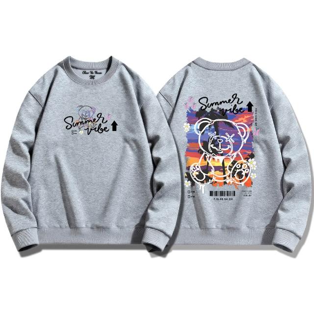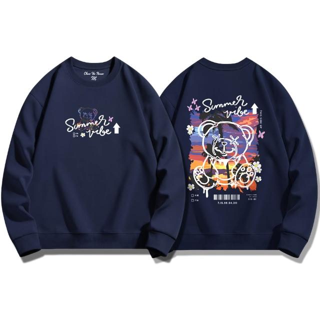 潮野屋夕陽下的泰迪熊 大學T 刷毛 長袖上衣 美式風 街頭穿搭 潮流服飾 WSD-930