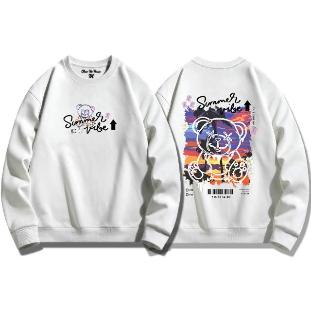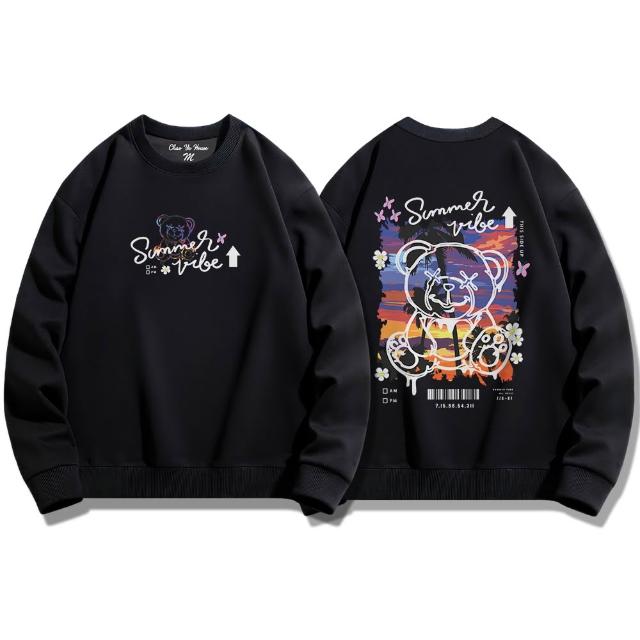 潮野屋夕陽下的泰迪熊 大學T 刷毛 長袖上衣 美式風 街頭穿搭 潮流服飾 WSD-930