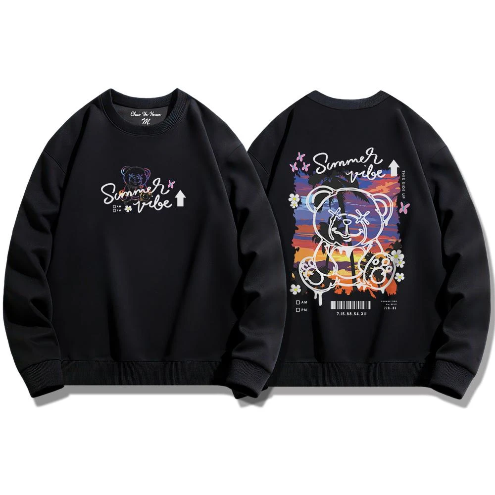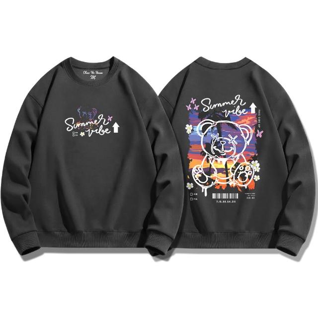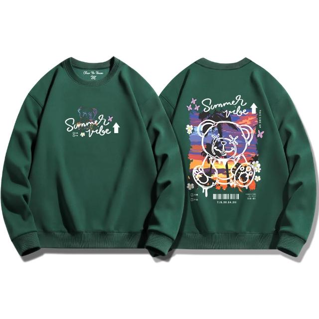 潮野屋夕陽下的泰迪熊 大學T 刷毛 長袖上衣 美式風 街頭穿搭 潮流服飾 WSD-930