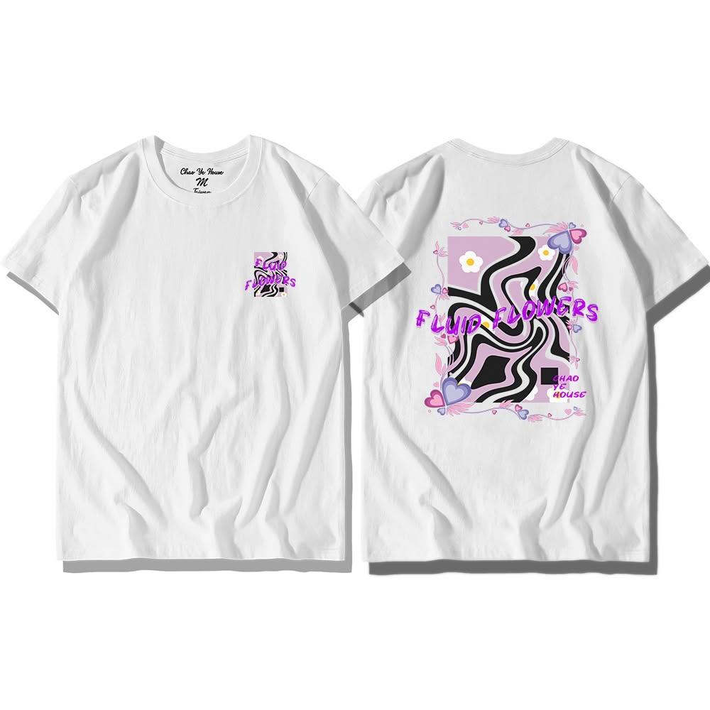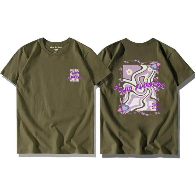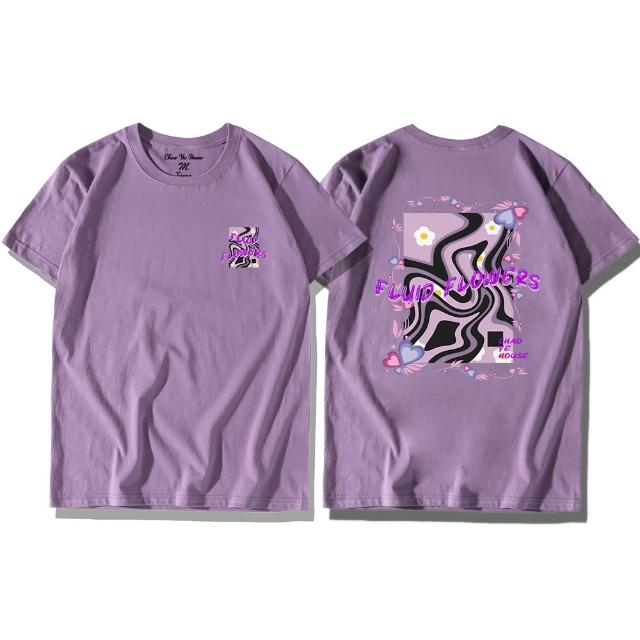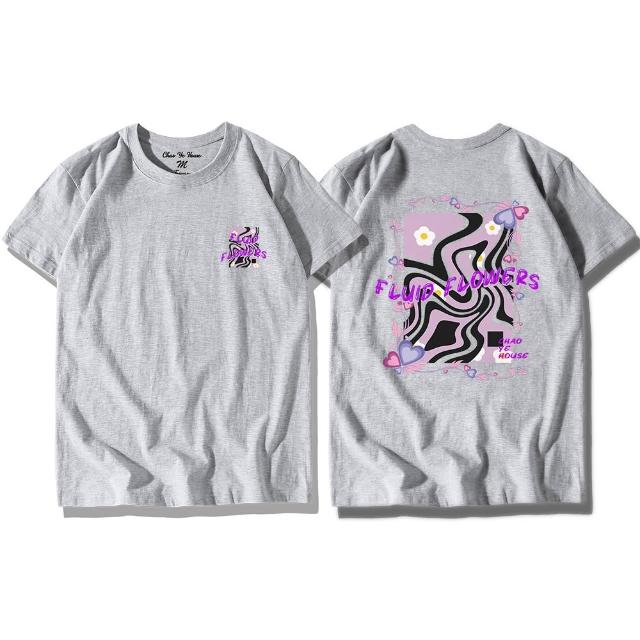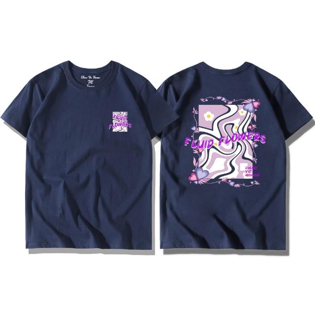 潮野屋流光花影 流體 小白花 純棉T恤 短袖上衣 美式風 休閒短T 街頭穿搭 潮流服飾 WTD-1247