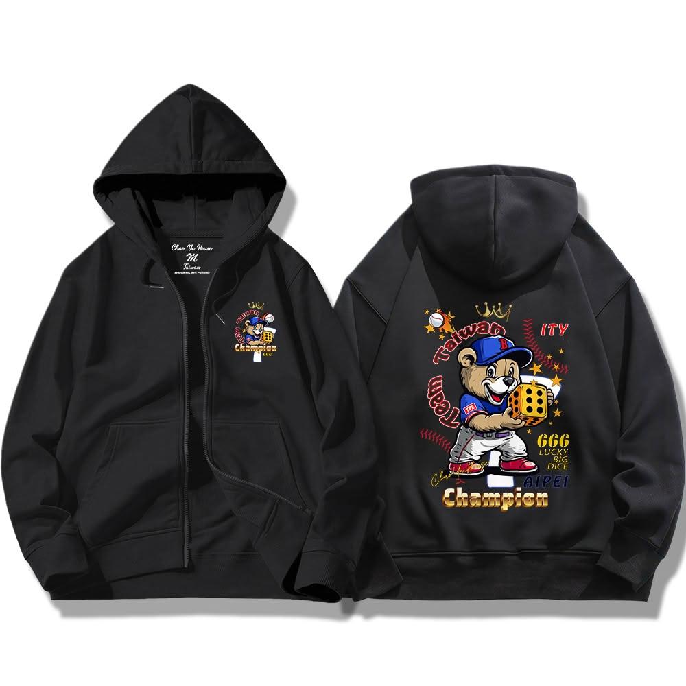潮野屋幸運骰子666 棒球 冠軍 台灣 連帽外套 刷毛 長袖上衣 美式風 街頭穿搭 WJD-1087