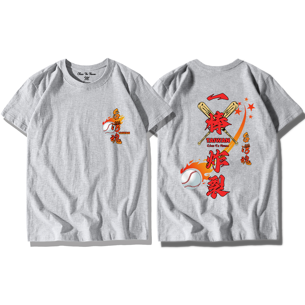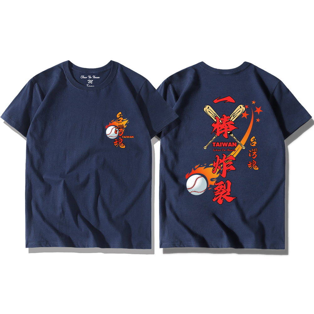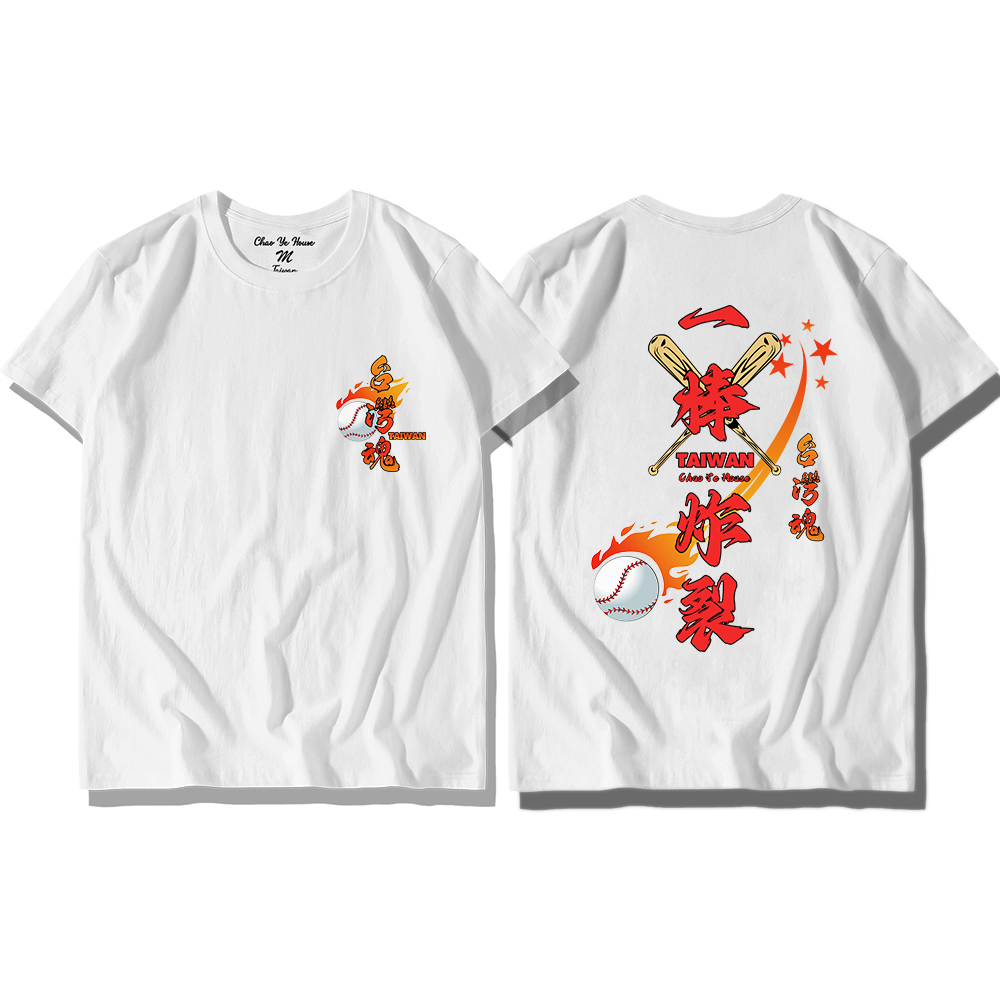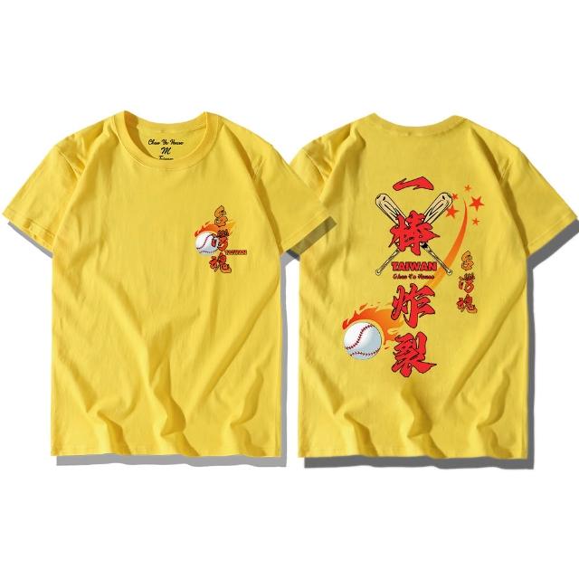 潮野屋台灣魂 一棒炸裂 棒球 純棉T恤 短袖上衣 美式風 休閒短T 街頭穿搭 潮流服飾 WTD-2009
