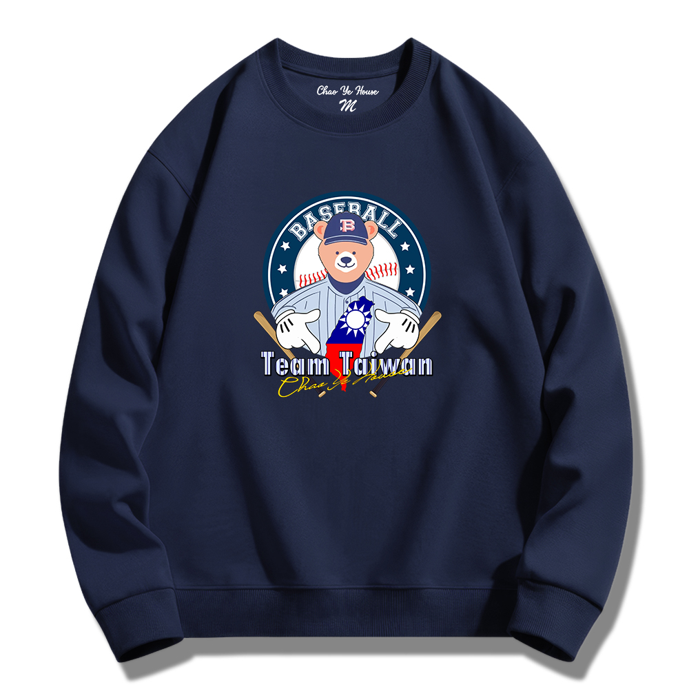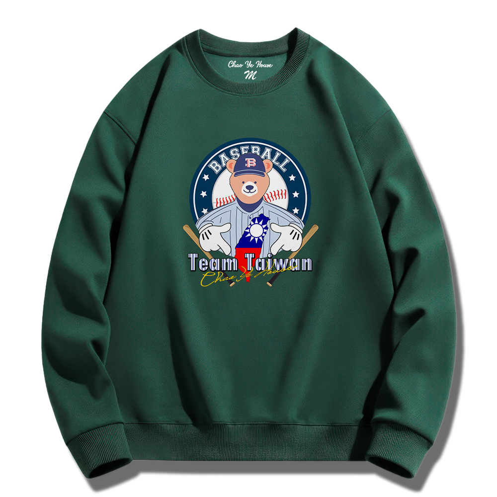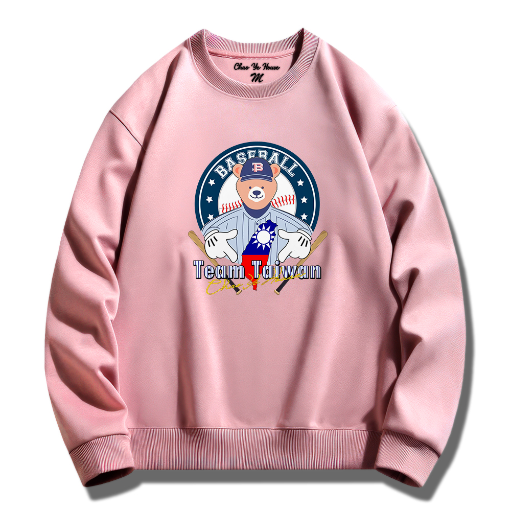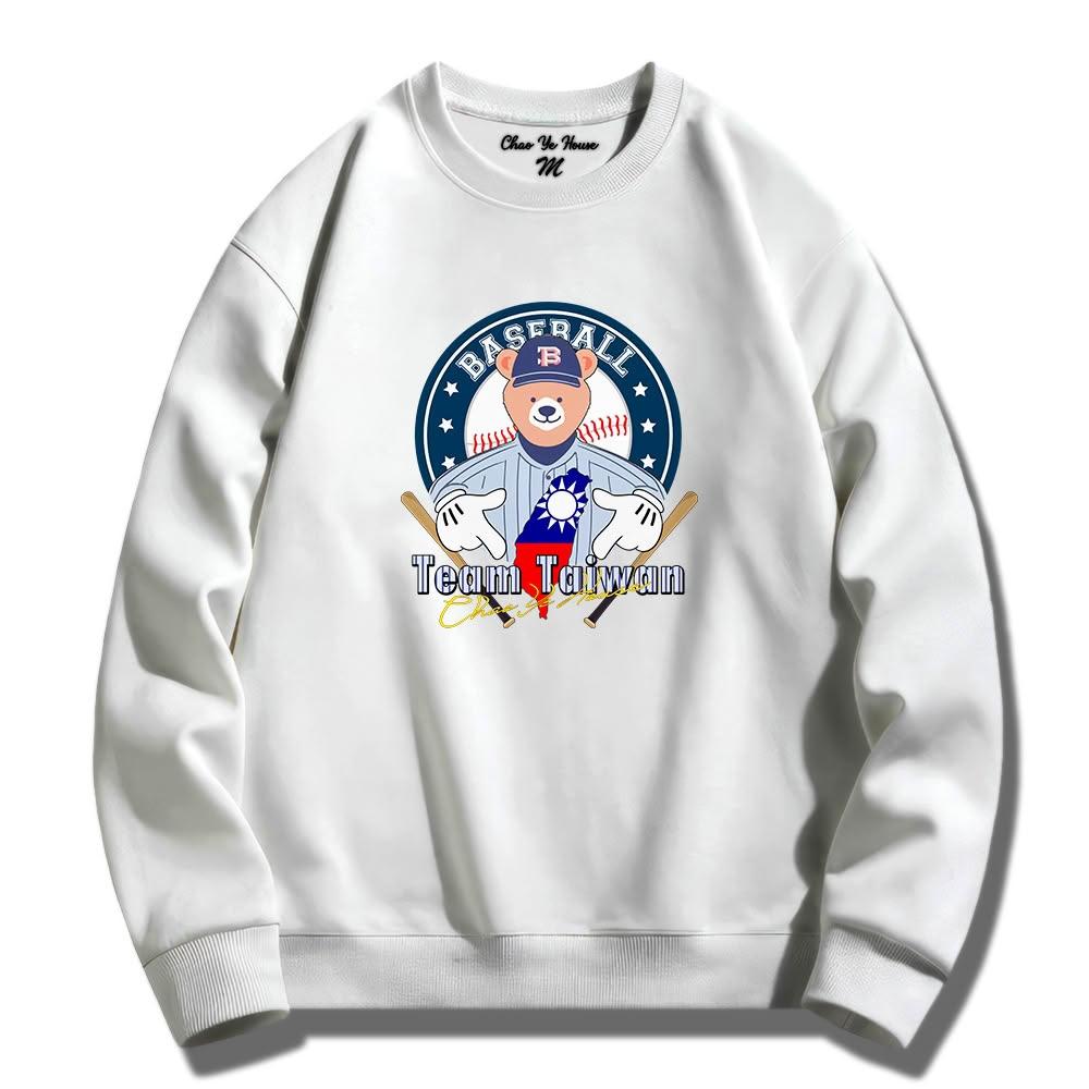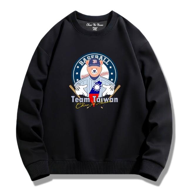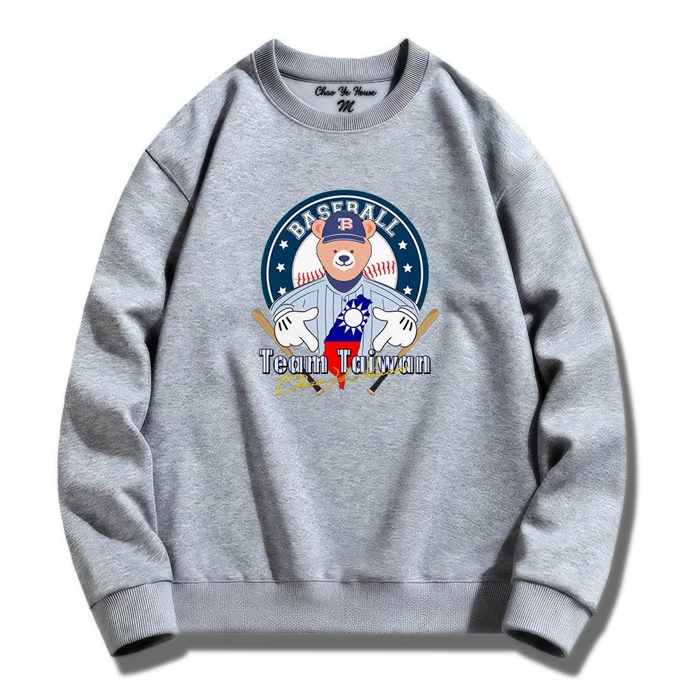 潮野屋棒球手勢熊 挺台灣 冠軍 大學T 刷毛 長袖上衣 美式風 街頭穿搭 潮流服飾 WSS-1088