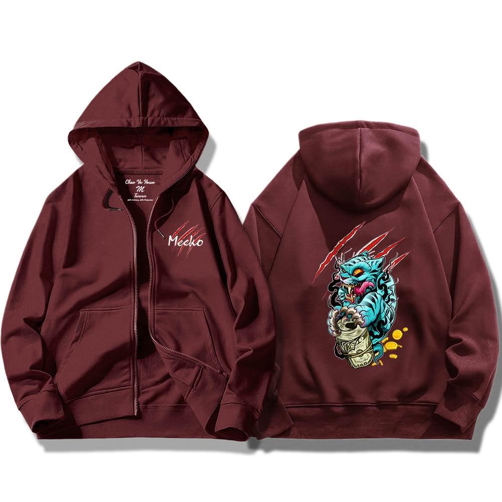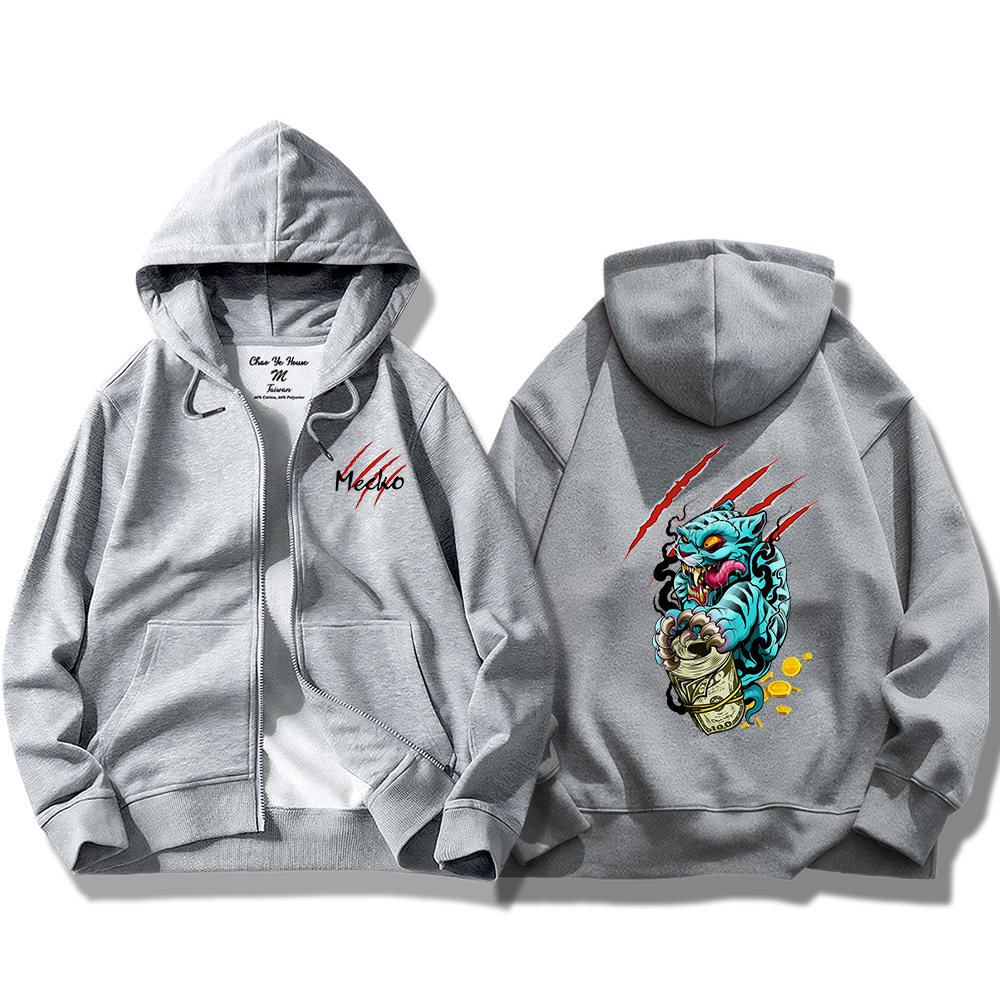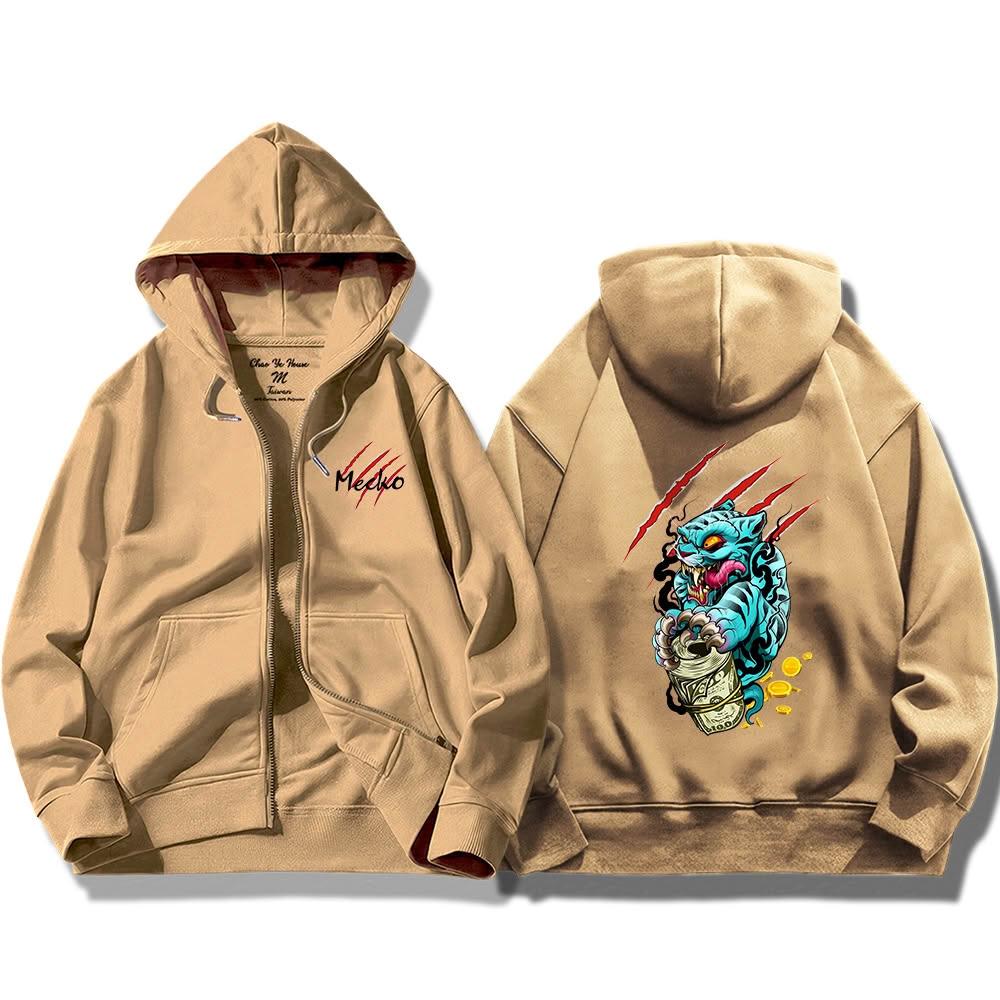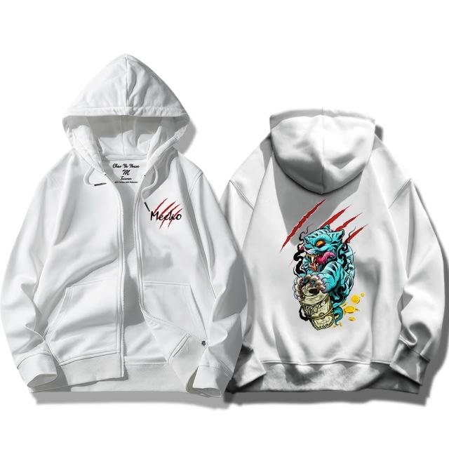 潮野屋咬錢虎 連帽外套 刷毛 長袖上衣 美式風 街頭穿搭 潮流服飾 WJD-497