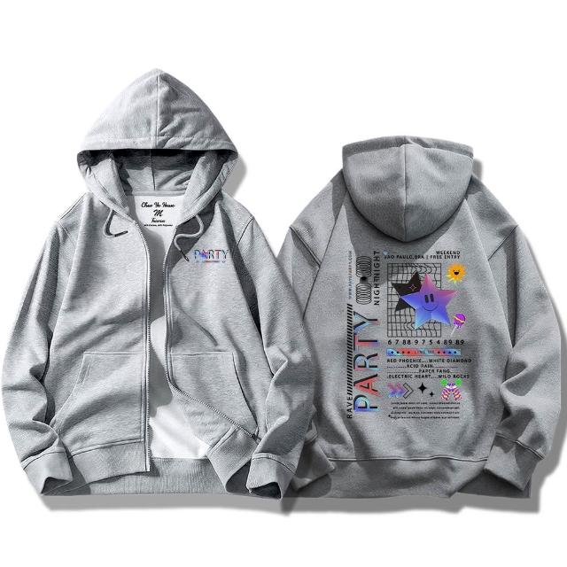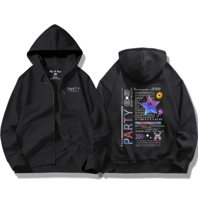 潮野屋星星派對 笑臉 連帽外套 刷毛 長袖上衣 美式風 街頭穿搭 潮流服飾 WJD-830