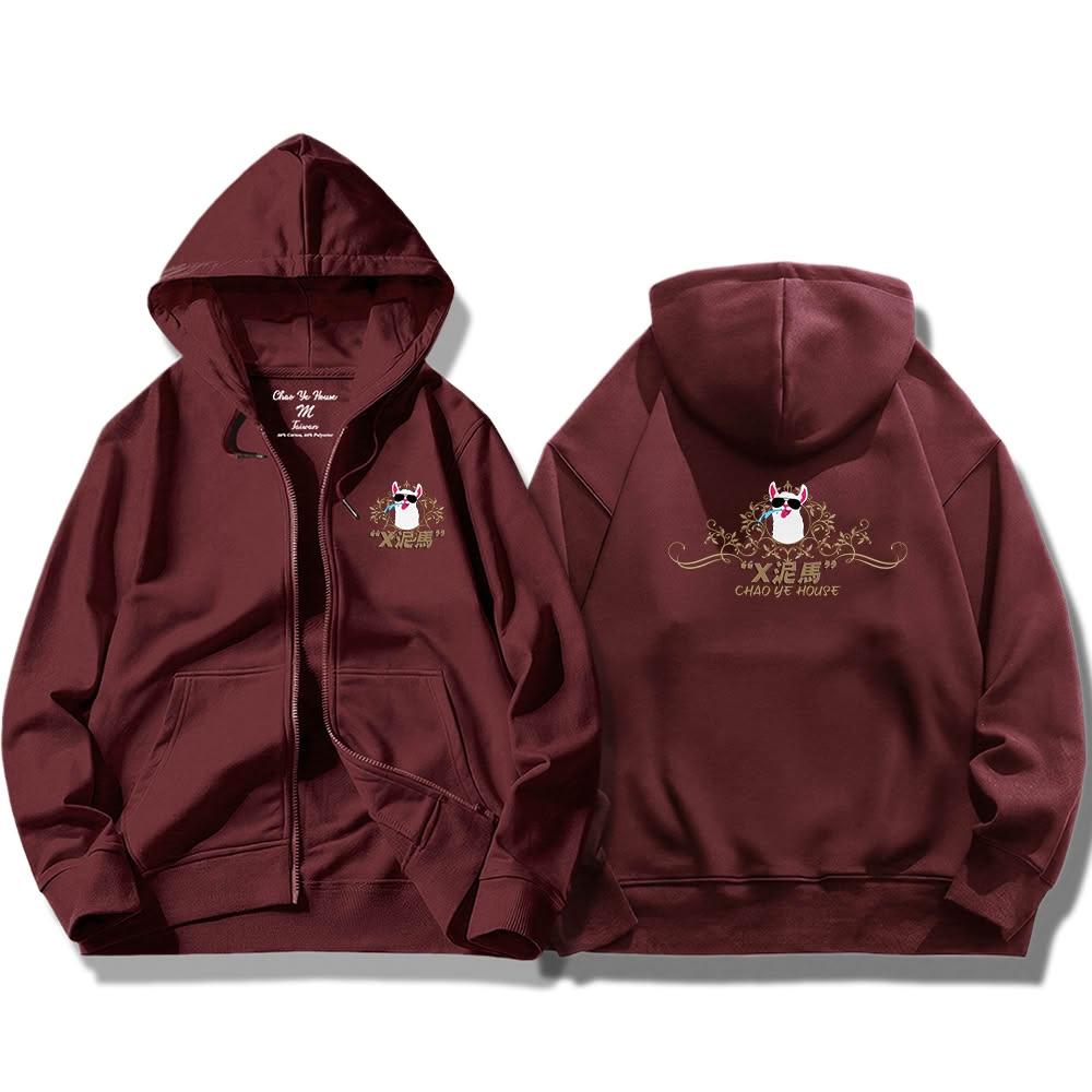 潮野屋X泥馬 羊駝 草泥馬 墨鏡 連帽外套 刷毛 長袖上衣 美式風 街頭穿搭 潮流服飾 WJD-1312