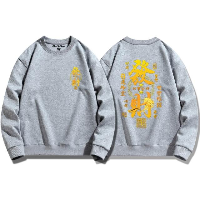 潮野屋發財天命 天官賜福 好運 大學T 刷毛 長袖上衣 文字風 街頭穿搭 潮流服飾 WSD-1315