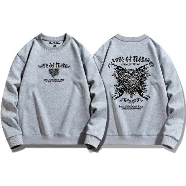 潮野屋荊棘之愛 心臟 十字架 哥德 大學T 刷毛 長袖上衣 美式風 街頭穿搭 潮流服飾 WSD-1320
