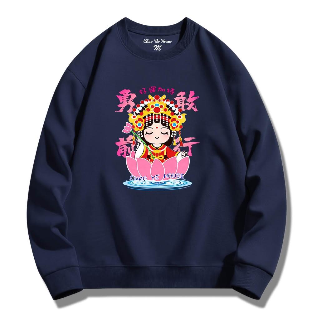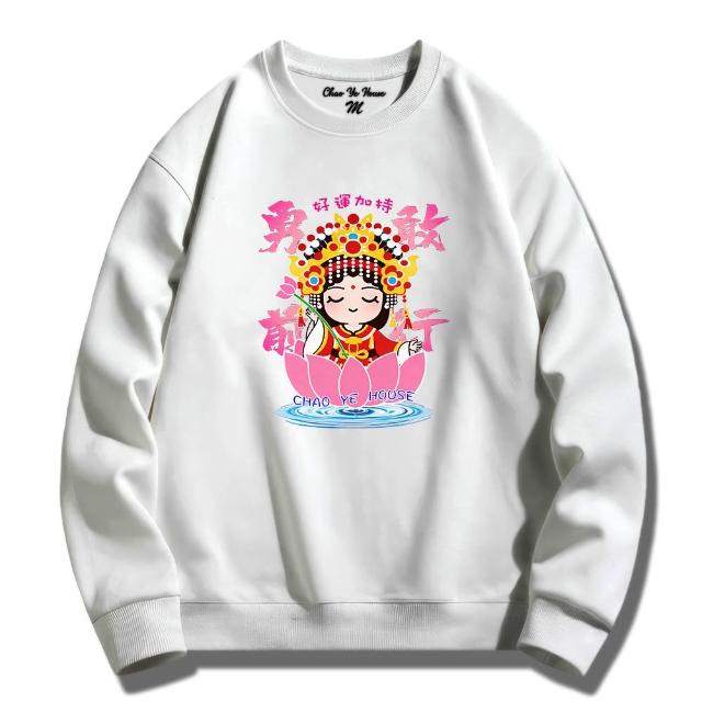 潮野屋勇敢前行 媽祖 好運加持 花 大學T 刷毛 長袖上衣 中國風 街頭穿搭 潮流服飾 WSS-1348