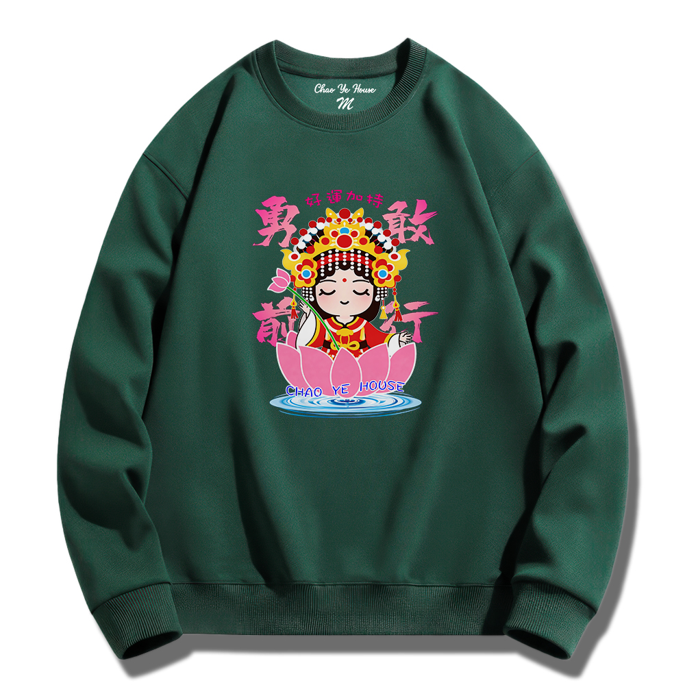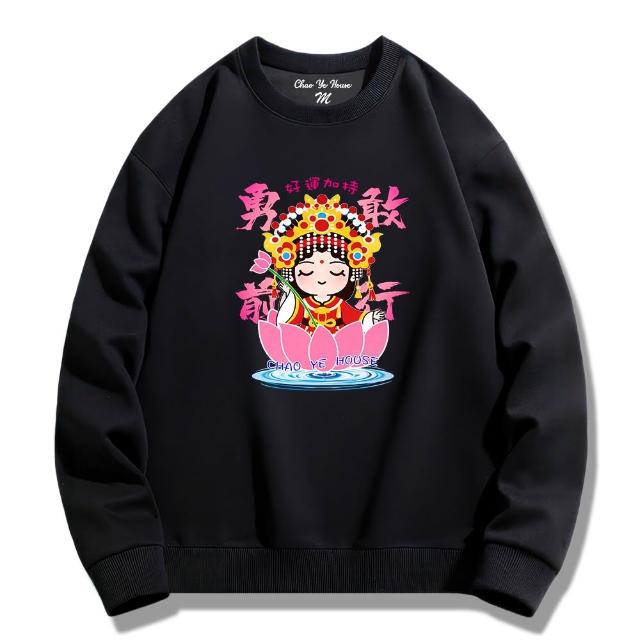 潮野屋勇敢前行 媽祖 好運加持 花 大學T 刷毛 長袖上衣 中國風 街頭穿搭 潮流服飾 WSS-1348
