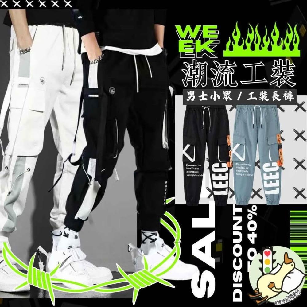 小蘭優購 韓系工裝褲 工裝褲 美式男褲 多口袋 束腳褲 工裝褲 忍者風 九分褲 街頭風 日系長褲 韓版工裝褲 休閒長褲