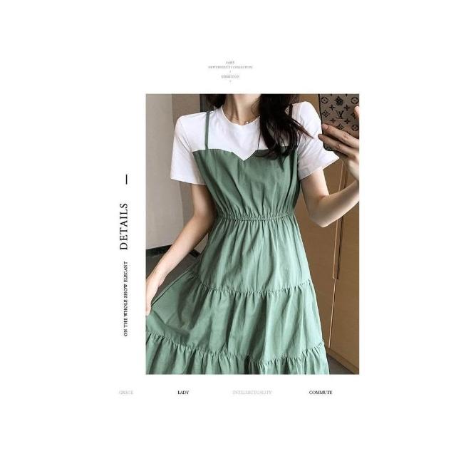小蘭優購 短裙連衣裙 假兩件連衣裙 裙裝 連衣裙 韓系連衣裙 T恤連衣裙 洋裝短袖連衣裙 短袖裙子 女上衣 女裝 裙子