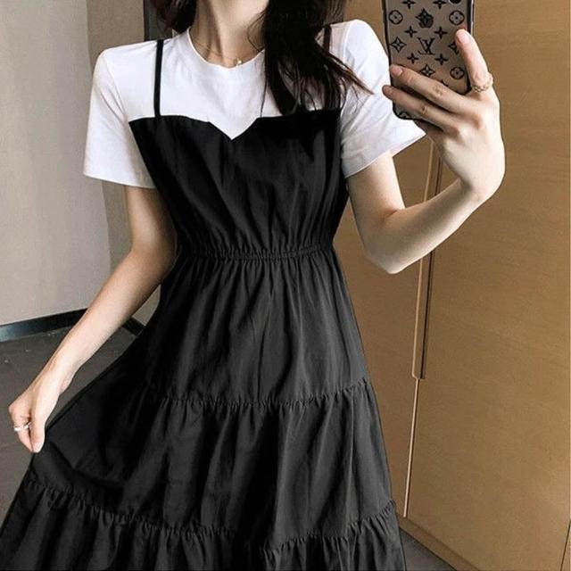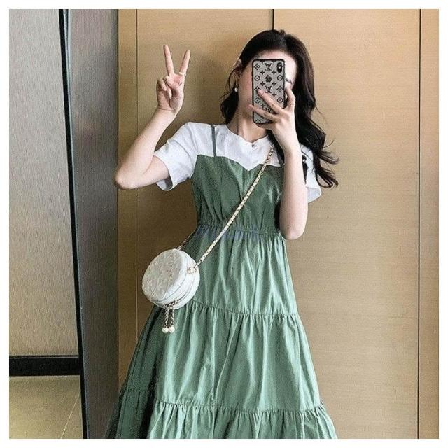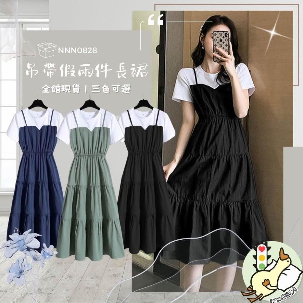 小蘭優購 短裙連衣裙 假兩件連衣裙 裙裝 連衣裙 韓系連衣裙 T恤連衣裙 洋裝短袖連衣裙 短袖裙子 女上衣 女裝 裙子