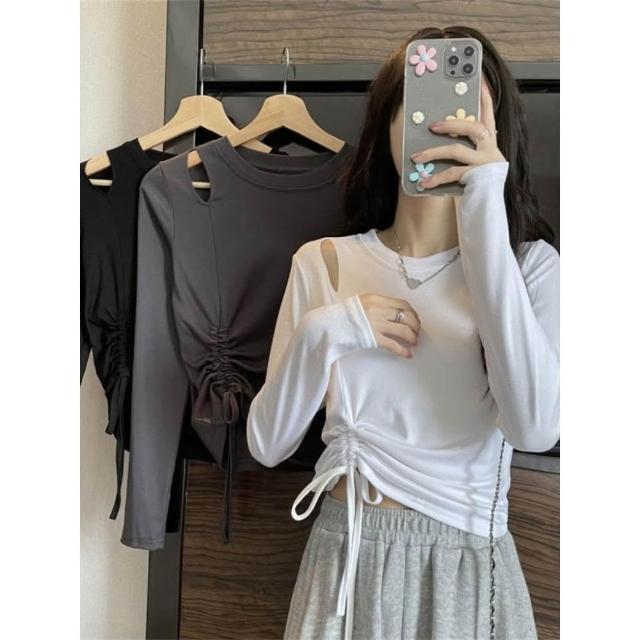 小蘭優購 長袖T恤 韓版長袖 女生長袖 女上衣 韓系上衣 秋天長袖 t恤 修身長袖 女裝 韓版打底衫 秋天衣服 衣服