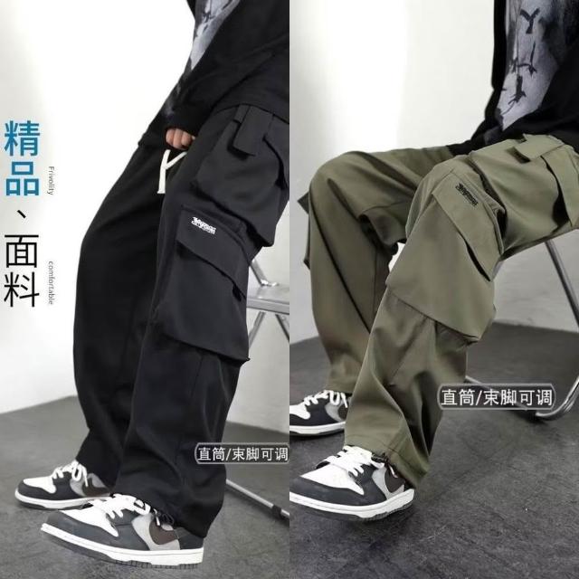 小蘭優購 日系工装裤 美式多口袋 工裝褲 男生裤子 韓版工裝褲 男生闊腿 休閒長褲 直筒長褲 工作褲 寬鬆褲子 休閑褲