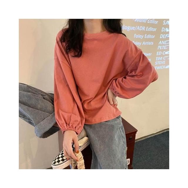 小蘭優購 韓版長袖上衣 女上衣 長袖 韓版薄款 素色長袖上衣 女裝 衣服 寬鬆上衣 顯瘦上衣 長袖T恤