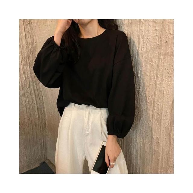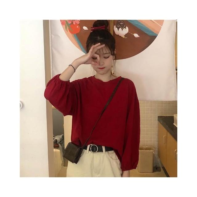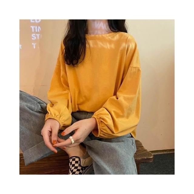 小蘭優購 韓版長袖上衣 女上衣 長袖 韓版薄款 素色長袖上衣 女裝 衣服 寬鬆上衣 顯瘦上衣 長袖T恤