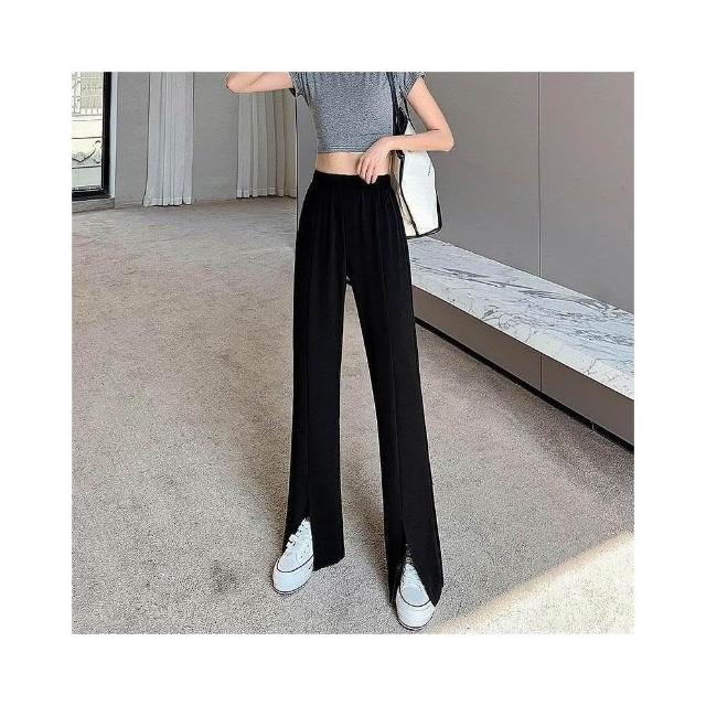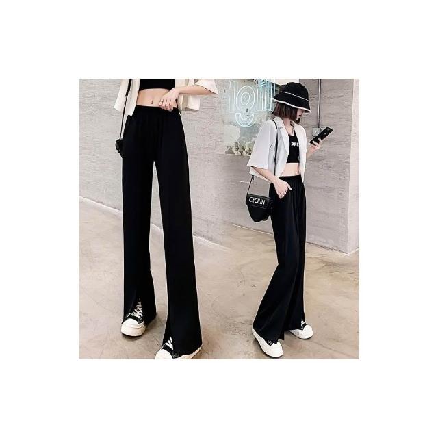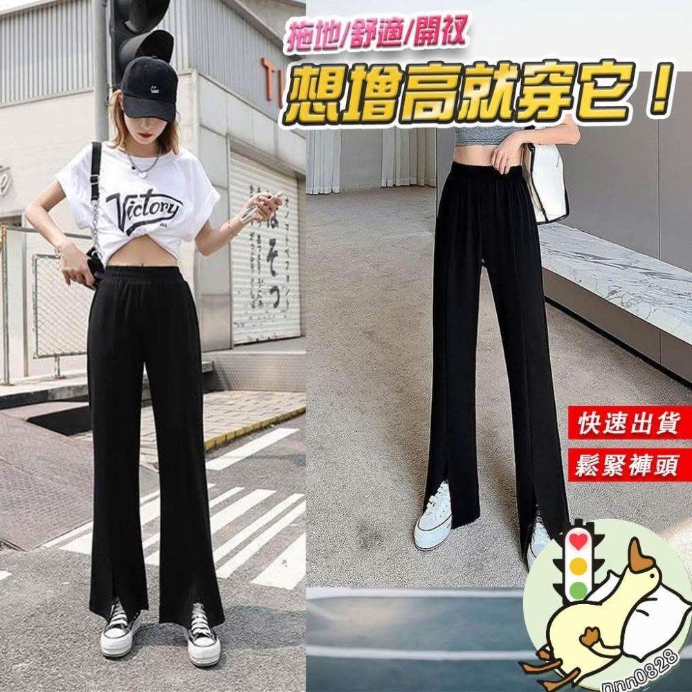 小蘭優購 韓版長褲 開叉長褲 西裝開叉褲 闊腿褲 拖地褲 顯長腿 高腰長褲 垂感寬褲 寬鬆 直筒褲 休閒女生褲 長褲