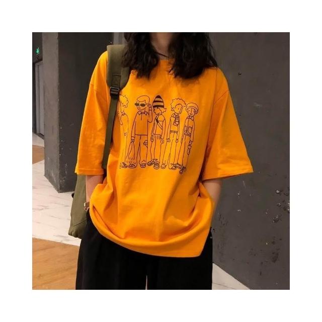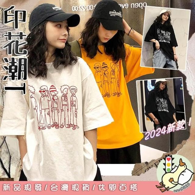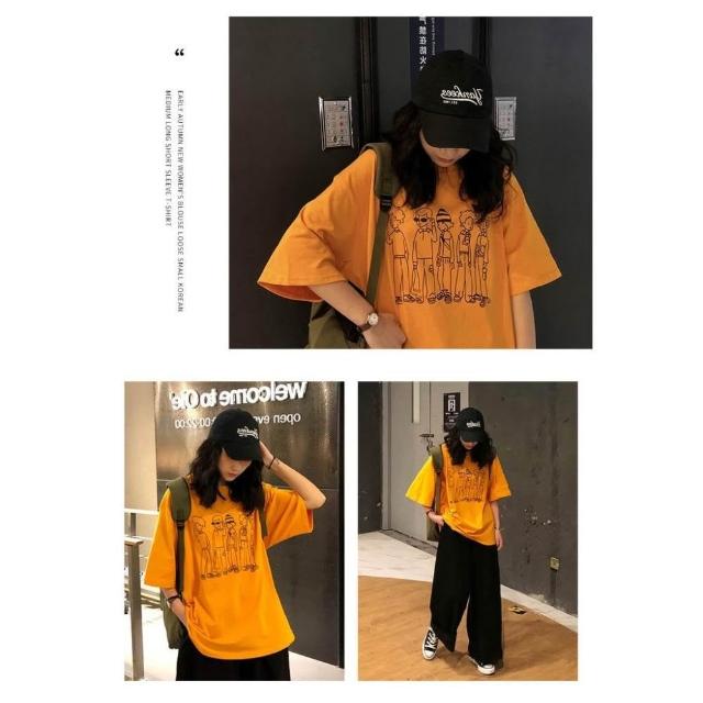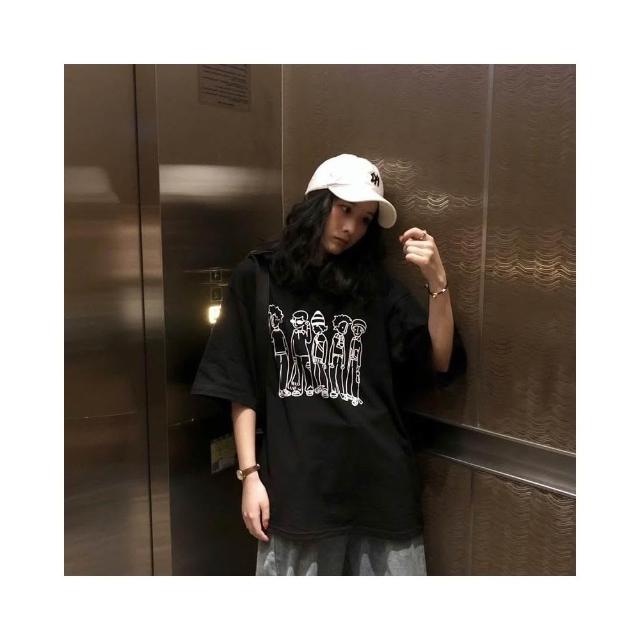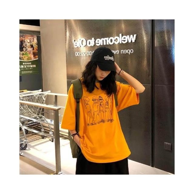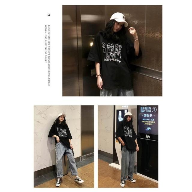 小蘭優購 韓版短袖 短T 女生T恤 休閒T恤 男友T 寬鬆上衣 落肩短袖 大碼T恤 搞流怪印花 潮女裝 短袖T恤 女裝