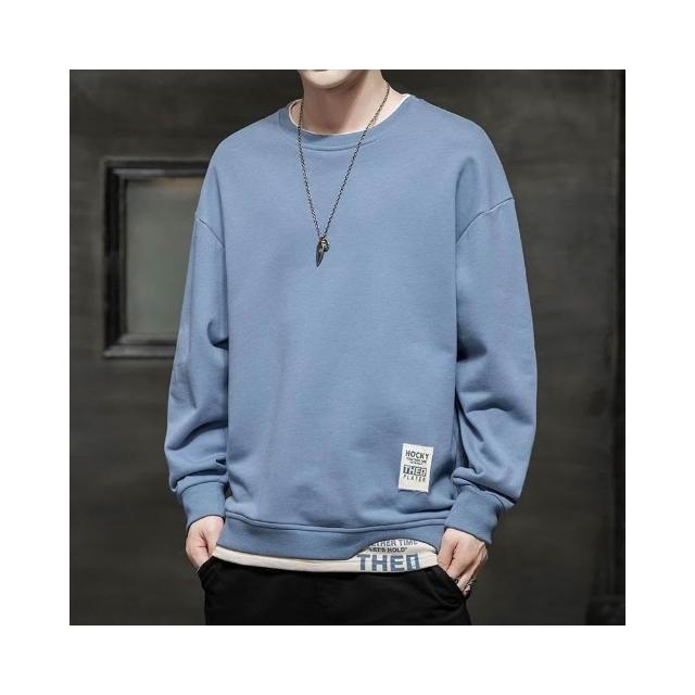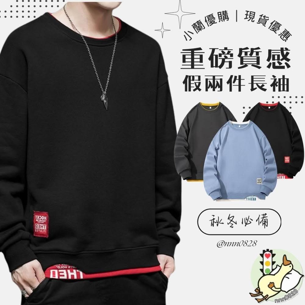 小蘭優購 男生長袖 韓式男款 長袖T恤 男長袖 長袖上衣男 男長袖T恤 假兩件長袖 圓領上衣 男長T 休閑長袖