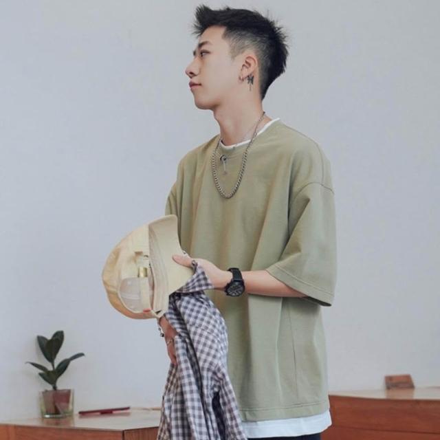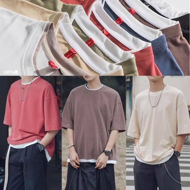 小蘭優購 韓版短袖 t恤 落肩短袖 五分袖 短T男 寬鬆衣服 男生衣服 印花T恤 短袖男 T恤 短T 素T 寬鬆短袖