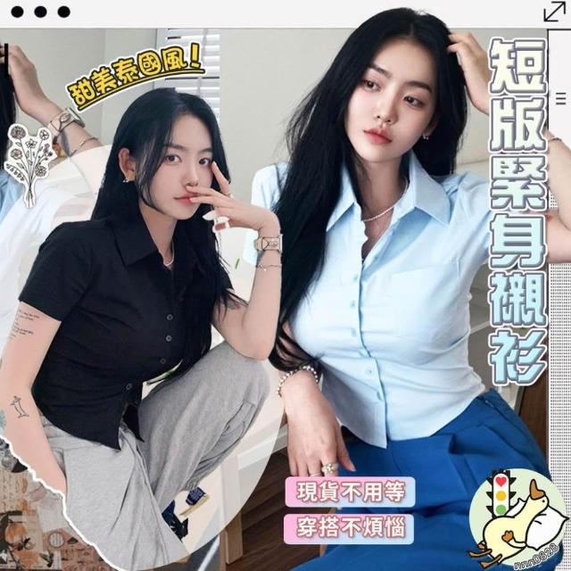 泰好看了 泰式辣妹襯衫 單排釦 素色 短款 女生襯衫 短袖 小個子女生 露腰 穿搭 開衫 夏季短袖襯衫