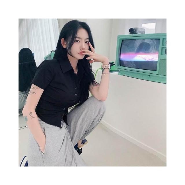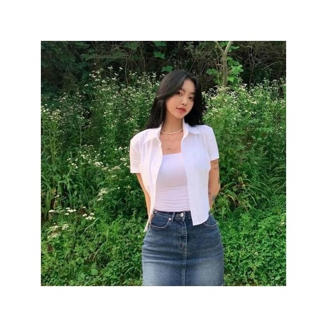 泰好看了 泰式辣妹襯衫 單排釦 素色 短款 女生襯衫 短袖 小個子女生 露腰 穿搭 開衫 夏季短袖襯衫