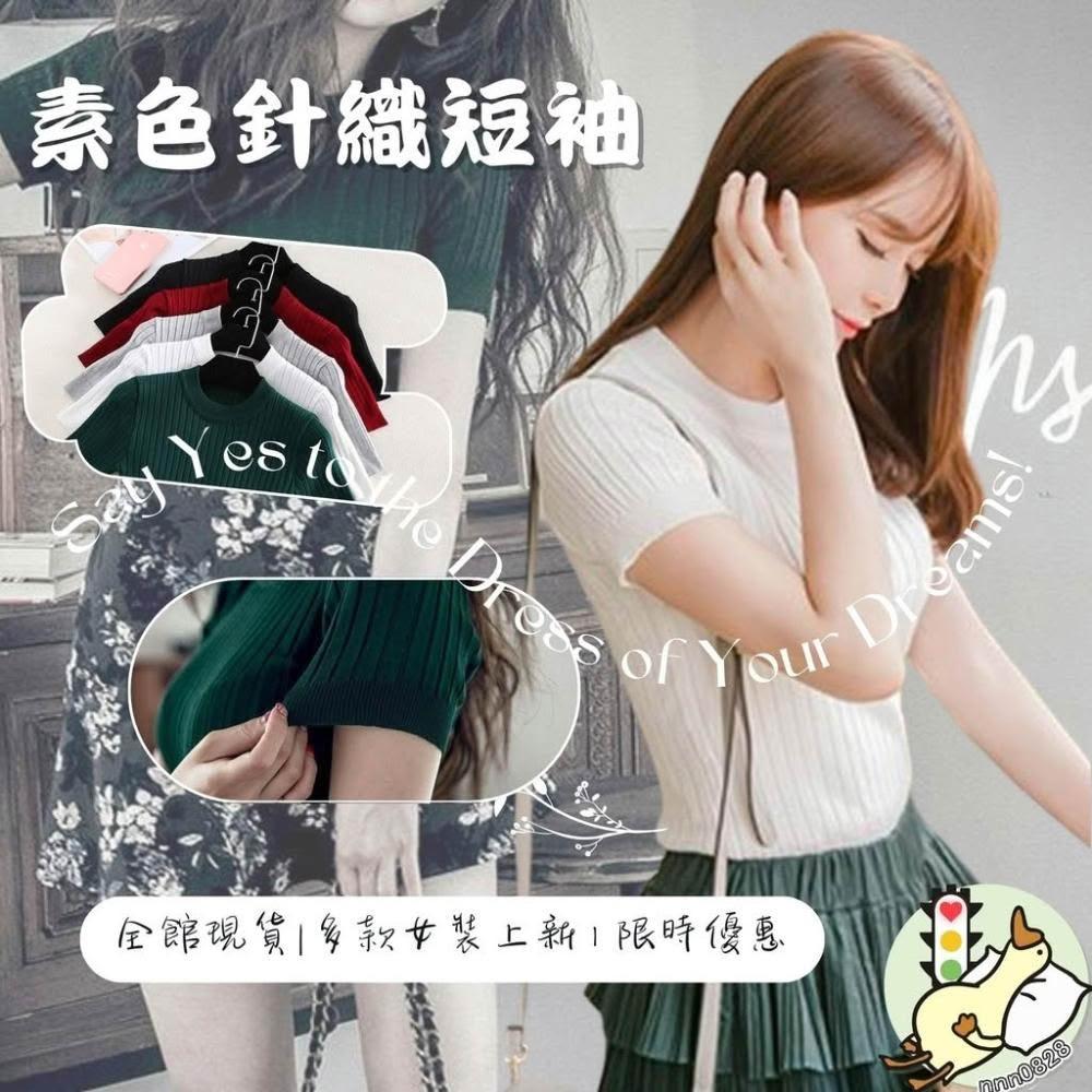 小蘭優購 袖針織衫女 素色內搭 短袖上衣 薄款修身針織上衣 短袖T恤 套頭毛衣 氣質內搭 圓領打底衫 韓版針織衫 女裝