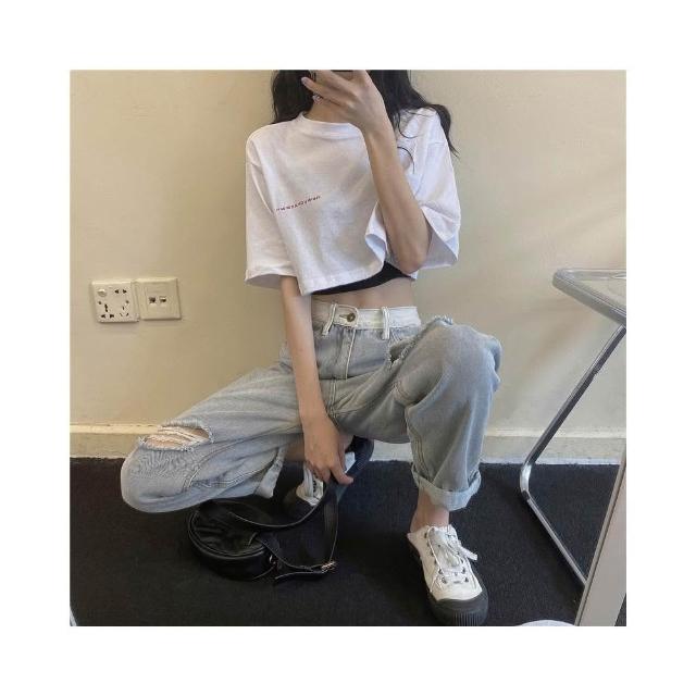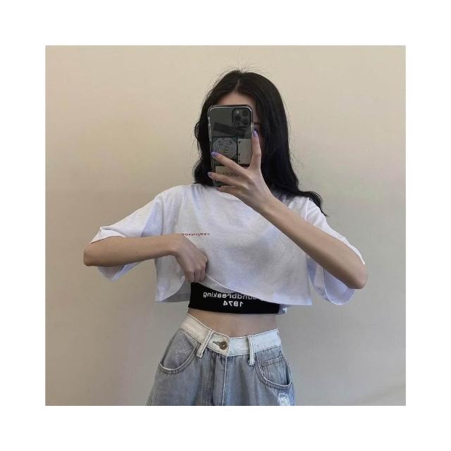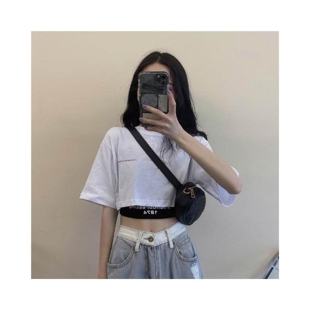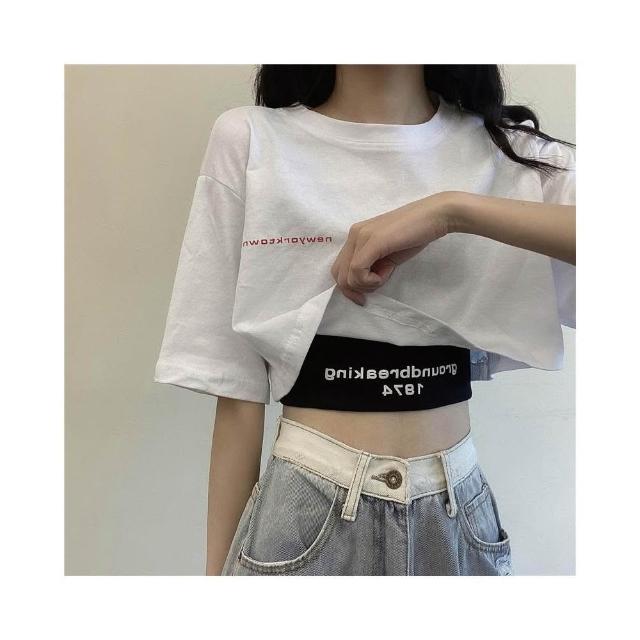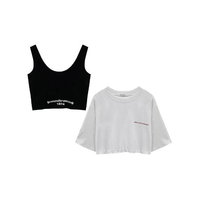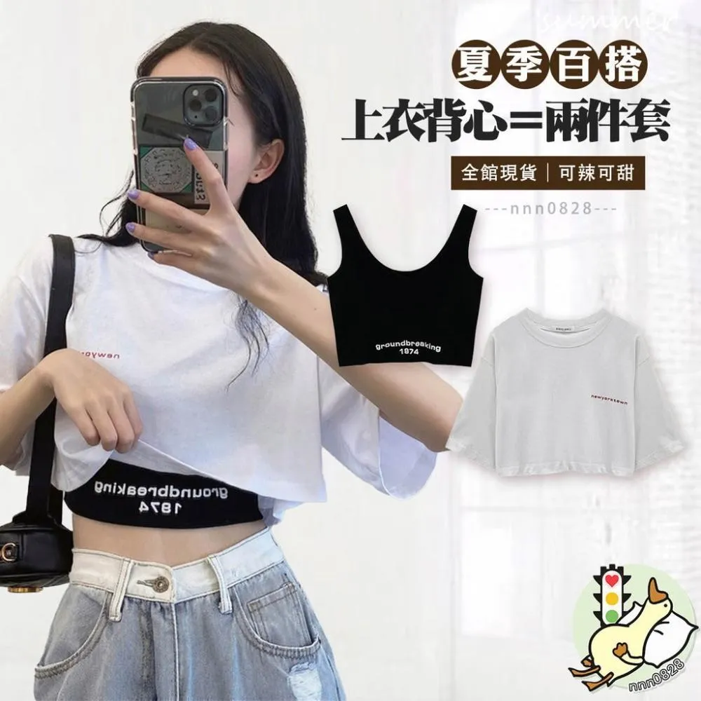 小蘭優購 韓版短袖 寬鬆短版上衣+黑色背心 短袖上衣 短袖t恤 女裝 顯瘦上衣 衣服 寬鬆 素T 韓系吊帶兩件套