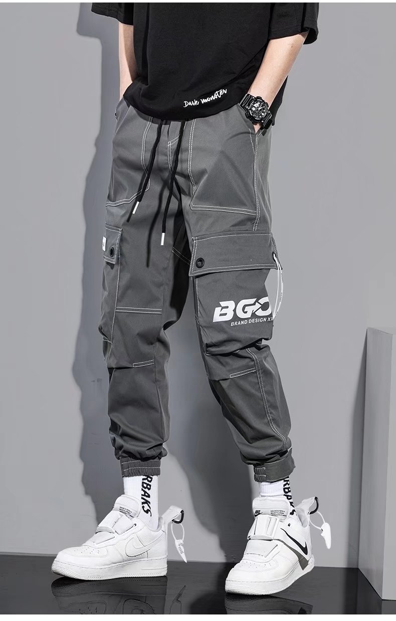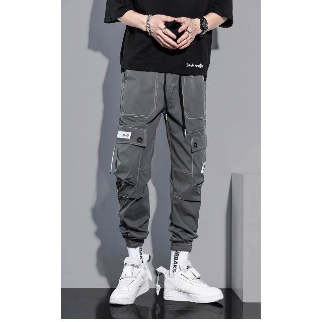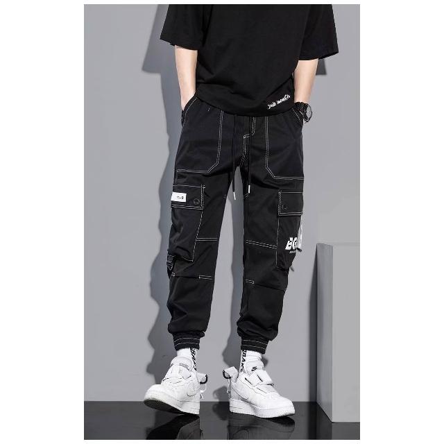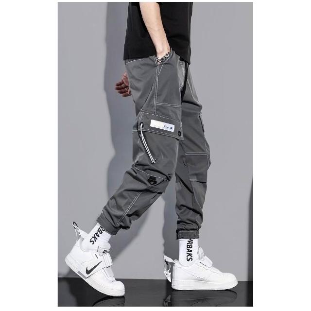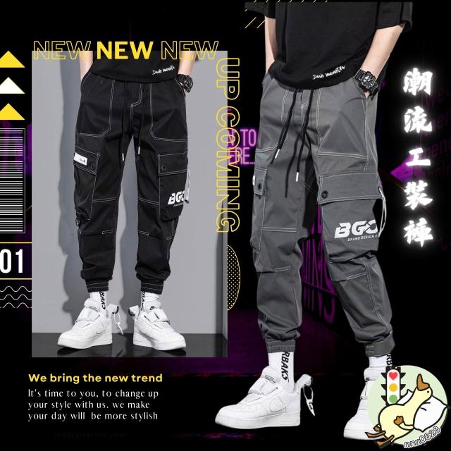 『小蘭優購』美式 復古 休閒褲 男潮牌 秋季 寬鬆 大尺碼 機能 束腳 工裝褲 哈倫 運動 褲子男