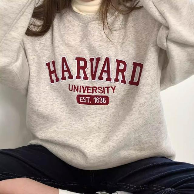 『小蘭優購』灰色加絨 衛衣 加厚款上衣 無帽 圓領 女寬鬆 中長款 秋冬 韓版 加厚 bf慵懶風 長袖 上衣
