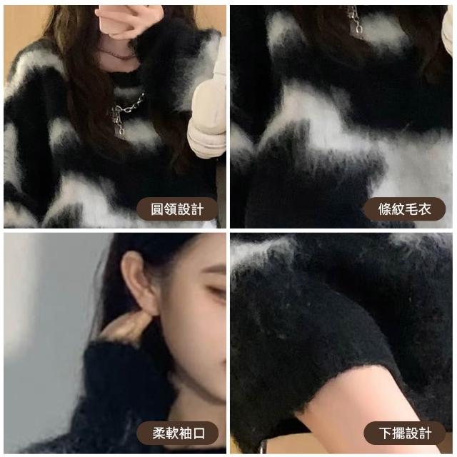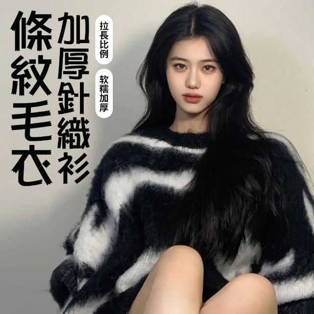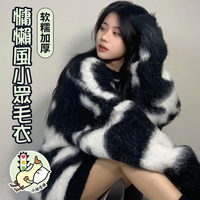 『小蘭優購』軟軟糯日系毛衣 毛衣女 秋冬 設計感 復古 慵懶風 條紋感 加厚 外穿 針織衫