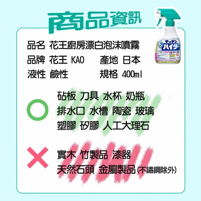 Kao 花王日本 花王 廚房泡沫除菌漂白清潔劑 本體400ml+補充罐組合 砧板 提籠 琉璃台 排水口 泡沫清潔 漂白 除菌 消臭 去汙