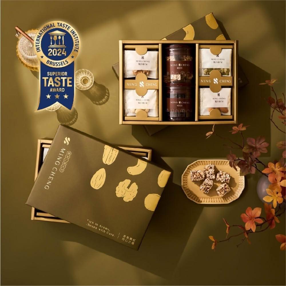 MING CHENG 明成手作獨家設計禮盒《經典臻品》 附提袋|堅果禮盒/禮盒/企業指定贈禮/伴手禮/堅果/果乾/餅乾/米香/得獎/福委會