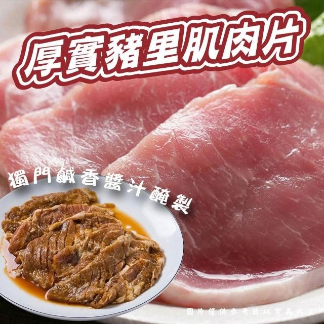 - 厚實豬里肌肉片鹹香醬汁醃製