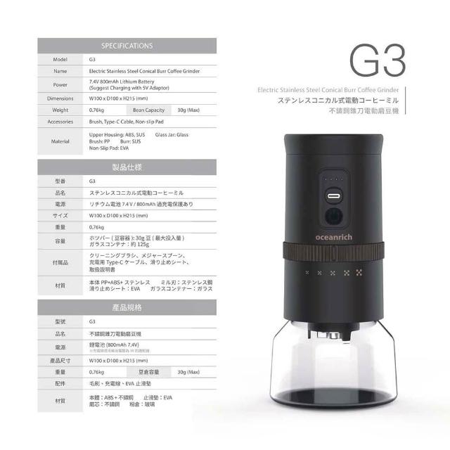 OceanrichG3 不鏽鋼錐刀電動磨豆機 (全新升級)