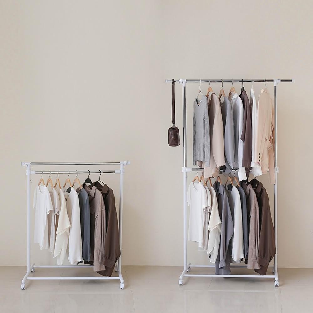TrueLife台灣製雙層升降吊衣架-白色 伸縮吊衣桿 升降吊衣架 附輪衣架 多功能 盒理OUTLET