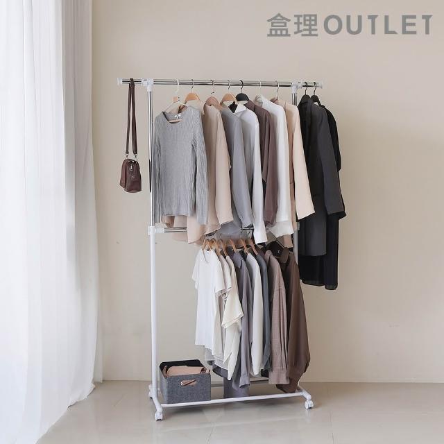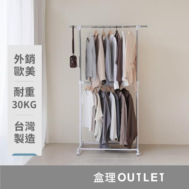 TrueLife台灣製雙層升降吊衣架-白色 伸縮吊衣桿 升降吊衣架 附輪衣架 多功能 盒理OUTLET