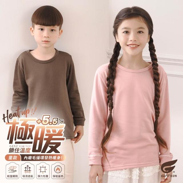 GIAT 吉亞特極暖5.5度C兒童刷毛圓領發熱衣/保暖衣