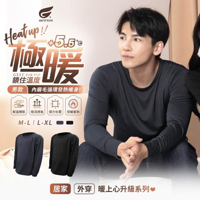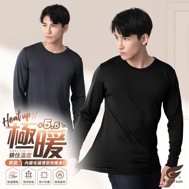 GIAT 吉亞特極暖5.5度C男刷毛圓領發熱衣/保暖衣