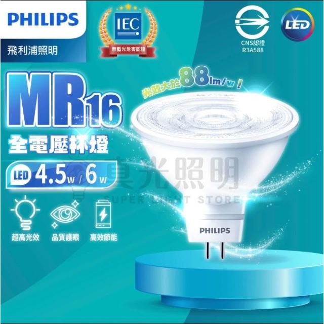Philips 飛利浦新款 飛利浦 PHILIPS 全電壓 MR16 杯燈 LED 6W 4.5W 免驅 快速安裝 投射燈