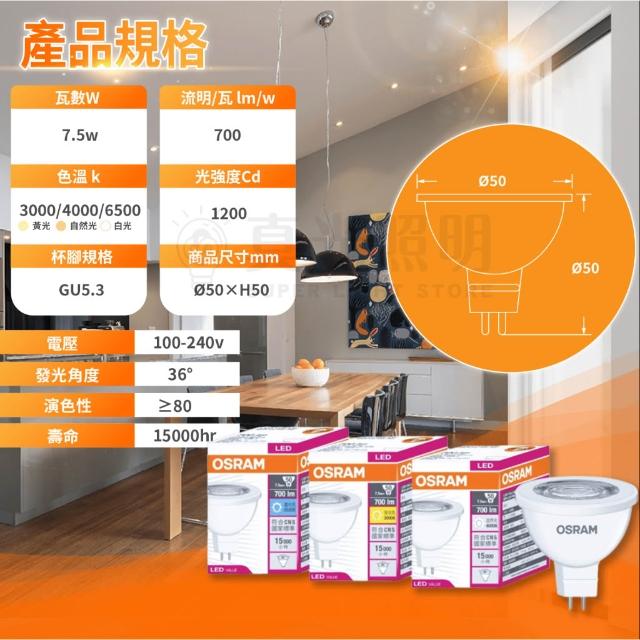 Osram 歐司朗🟠 德國OSRAM 歐司朗 ⭐️ 星亮LED MR16 7.5W 杯燈 GU5.3 杯燈 全電壓 免安杯燈 免變壓器